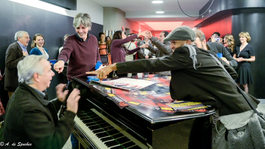Un momento scherzoso con l'Orchestra di Piazza Vittorio